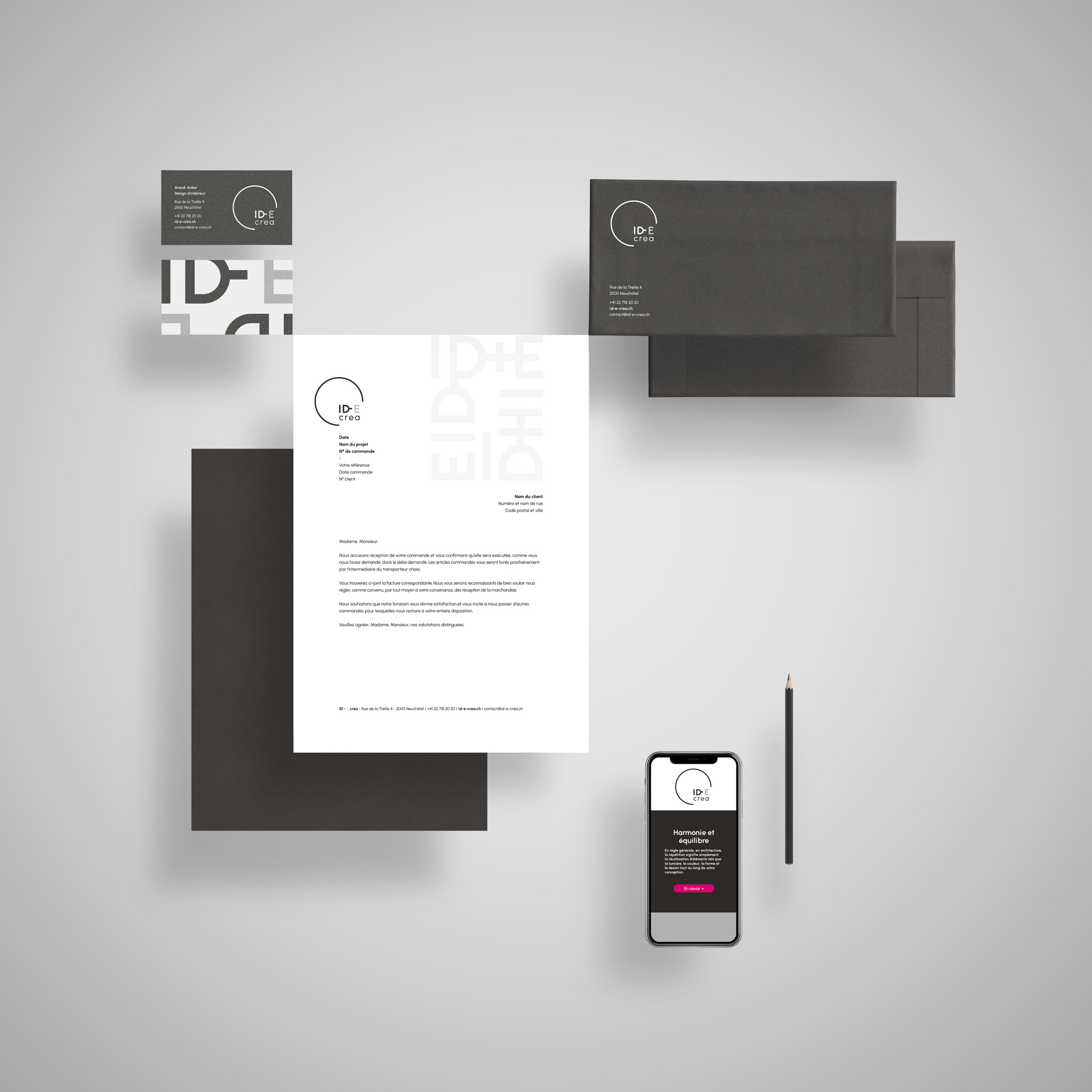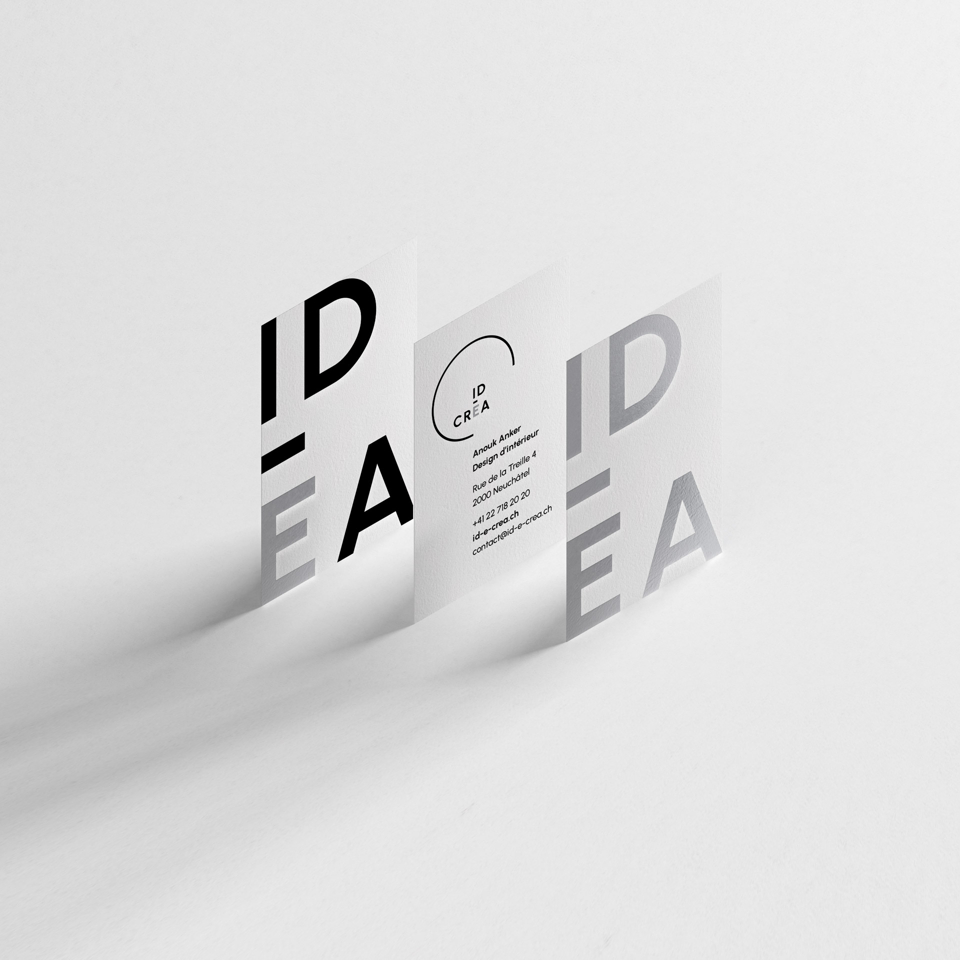 ID-E crea Entwicklung der visuellen Identität einer Innenarchitekturagentur mit Sitz in Neuenburg. Entwurf des Logos und Umsetzung des grafischen Erscheinungsbildes auf verschiedenen Kommunikationsmedien. Client: ID-E crea